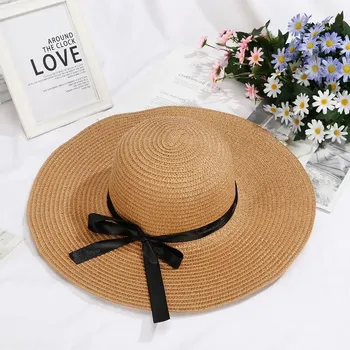 Dames Gestreepte Zomer Strohoed Met Strik Brede Rand Floppy Panama Outdoor Opvouwbare Strandpet Voor Dames