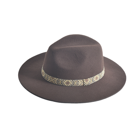 כובע fedora rancher עם שוליים רחבים נוקשה עיצוב פס 100% צמר פוליאסטר חש יוקרה צ 'אפאו צבעוני מותאם אישית