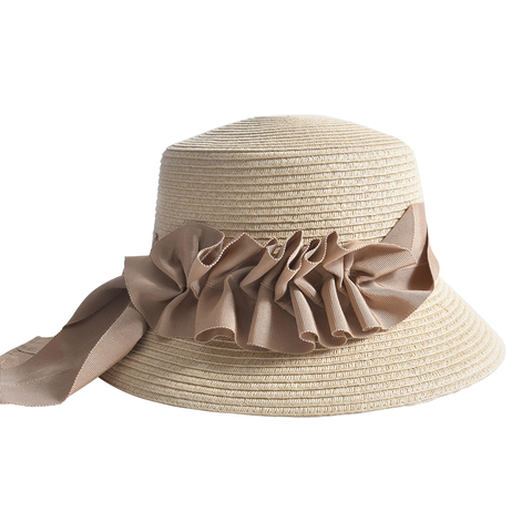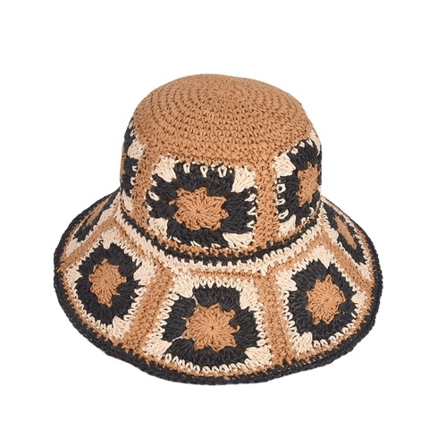 Yüksek kaliteli kağıt örgü dikiş hasır şapka kadın geniş ağız kova şapka ilmek şerit ile rahat ve seyahat için