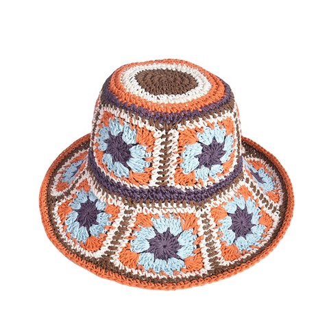 Yeni moda tasarımcısı erkek rafya tığ saman kova şapka plaj balıkçılık için işlemeli desen ile yüksek kalite düz boyalı